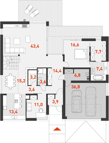 14. Garaż dwustanowiskowy36,80 m2