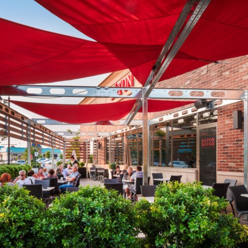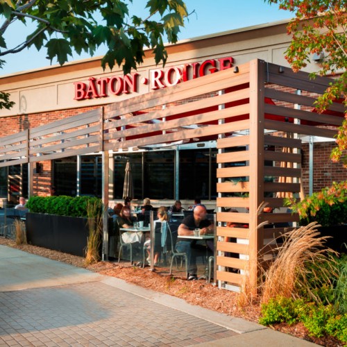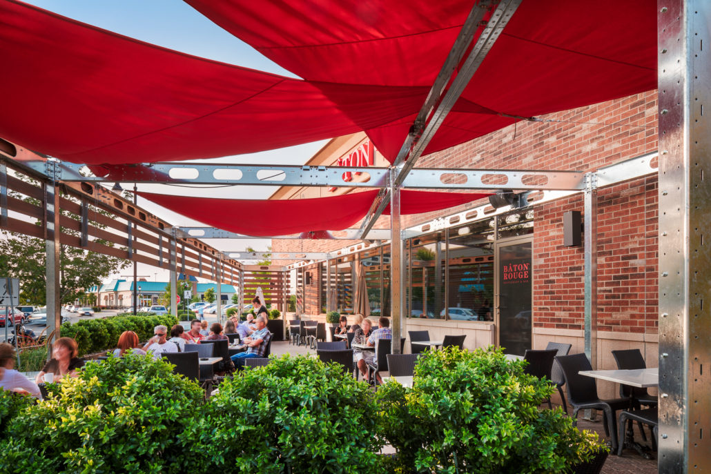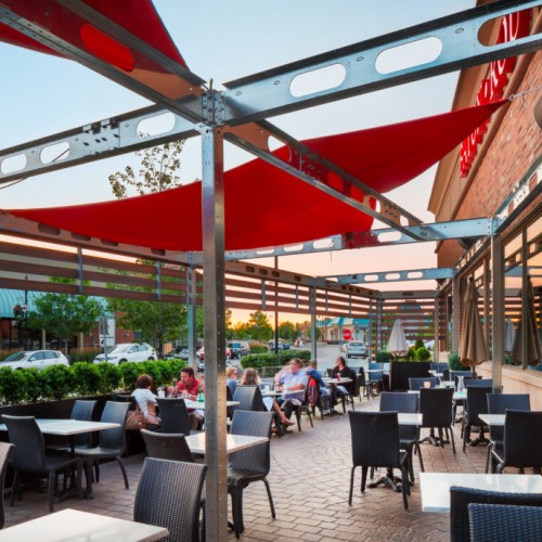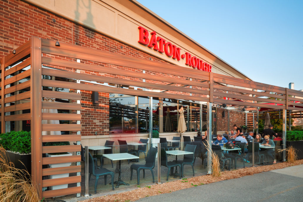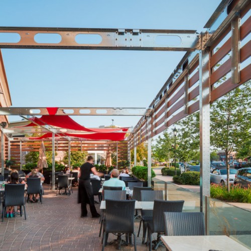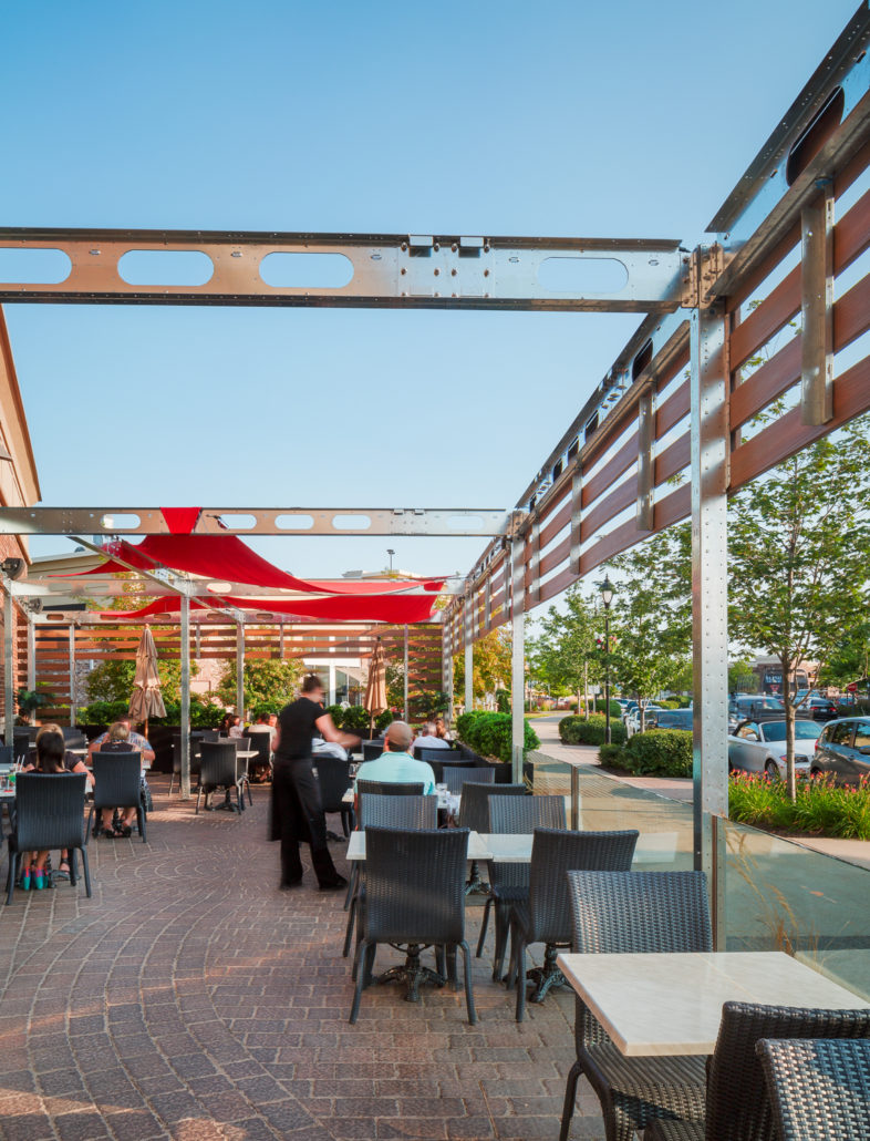 The challenge we faced when we took on this unusual project was to create a unique street-front patio for a small restaurant in a shopping centre. The design had to blend with the restaurant itself and the small space available.