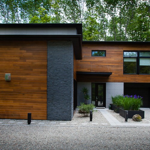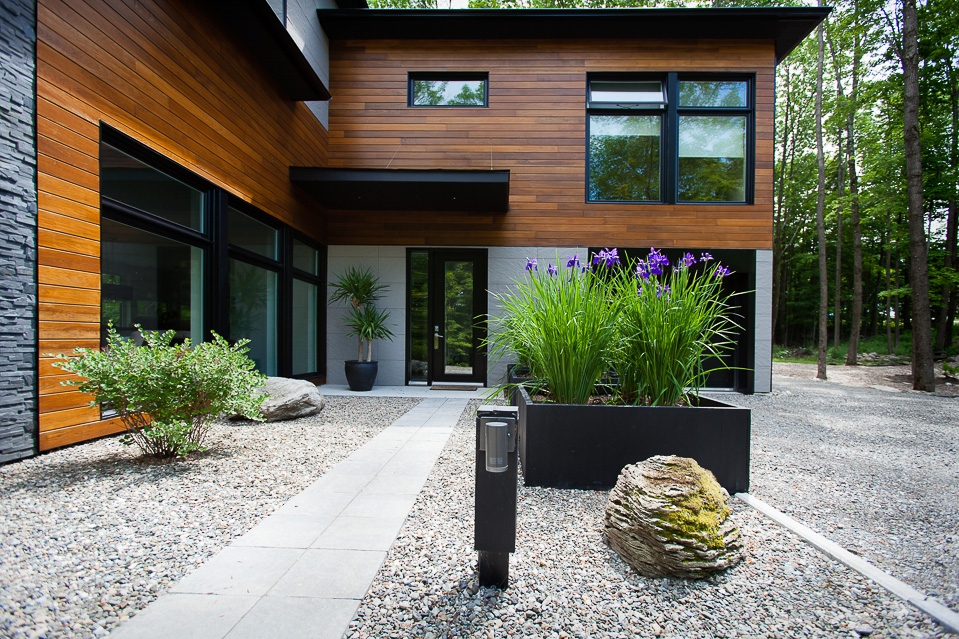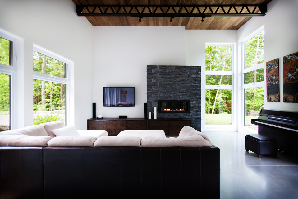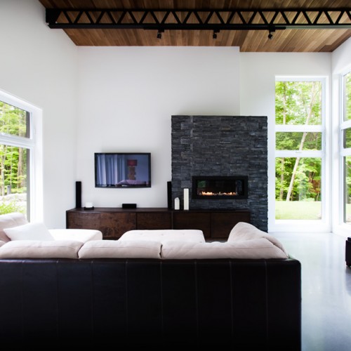 The many wide windows are offering breathtaking views on the surrounding nature and a lot of natural light throughout the day. Clean lines and some materials like stone, wood and other natural finishes are adding to the comfort and to the contemporary look of this two story country home.